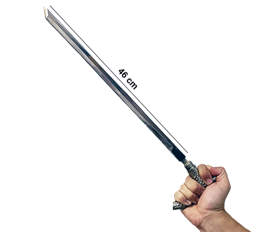 Fabriquée avec une précision exceptionnelle, cette canne épée dispose d'une lame en carbone de 46 cm. Pour des raisons de sécurité, il est interdit de se déplacer avec la lame montée. Celle-ci peut être facilement démontée et rangée, permettant ainsi d'utiliser la canne comme un simple soutien de marche. Dotée d'une poignée en étain robuste, solidement vissée dans un fût en métal durable, elle assure fiabilité et confort à chaque pas.