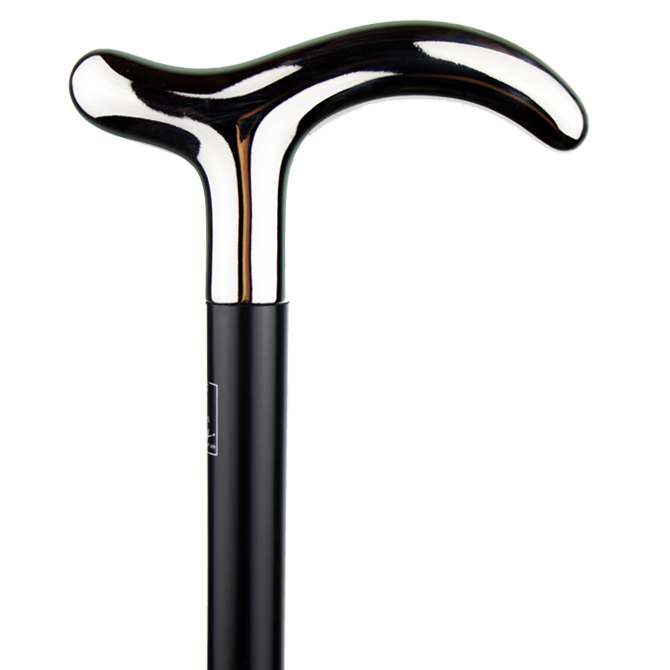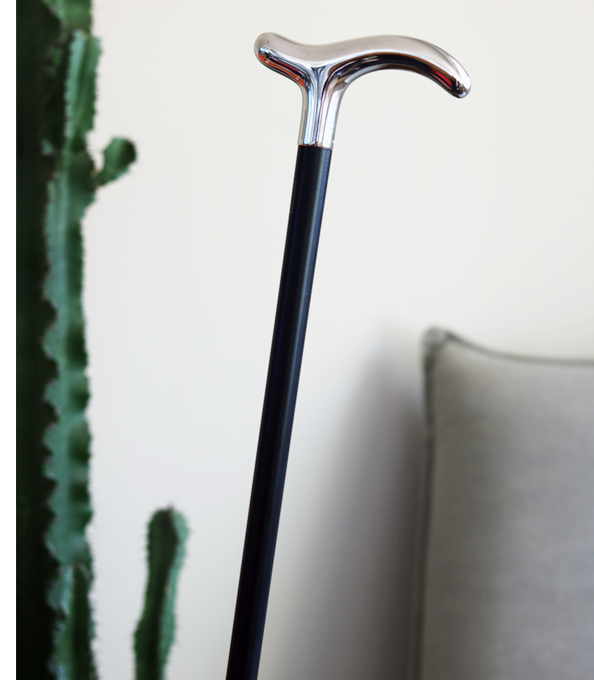 Dotée d'une poignée chromée unie sur bâton en hêtre laqué noir, cette canne Fayet offre une bonne prise en main et un toucher agréable.