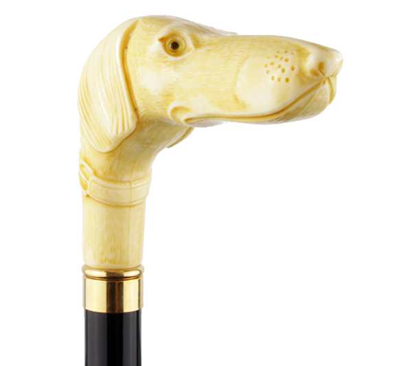 Canne élégante avec pommeau tête de chien en imitation ivoire
