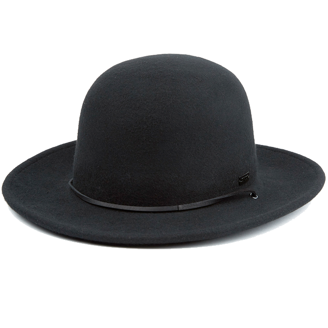 Le chapeau Céline est 100% laine avec un authentique bracelet en cuir noir.