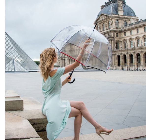 Apportez une touche de chic à la française à vos journées pluvieuses avec ce superbe parapluie transparent inspiré des années 60 !