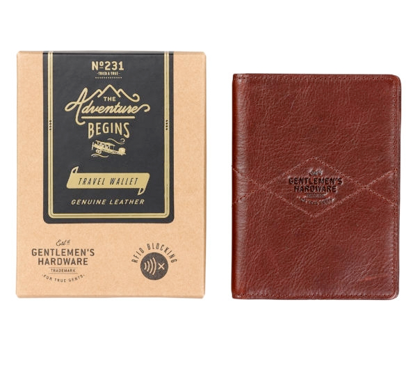 Portefeuille de voyage en cuir véritable avec doublure RFID.
