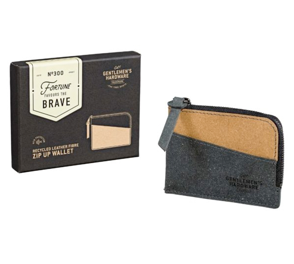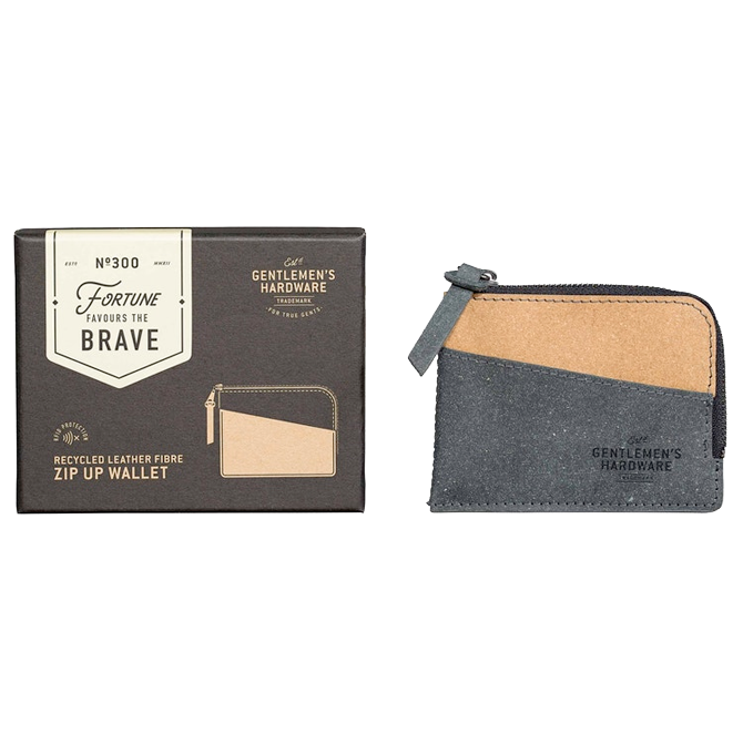 Le portefeuille Zip Up de Gentlemen's Hardware est fabriqué à partir de cuir recyclé noir et beige.